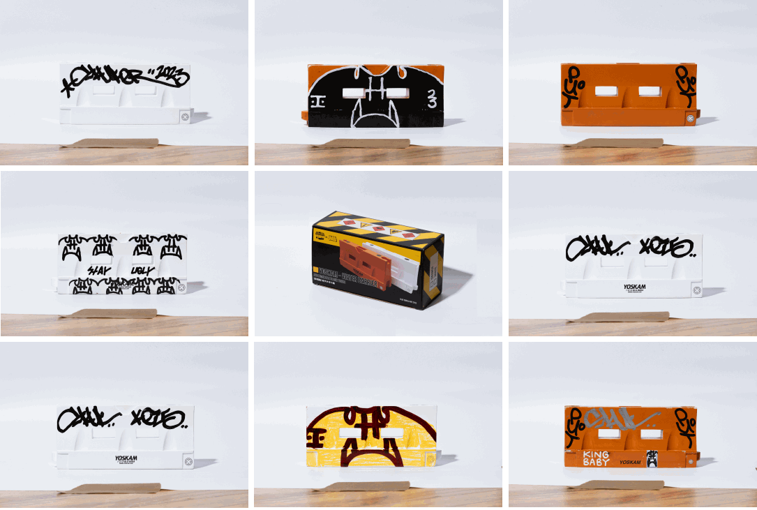 Bold and dynamic packaging design for YOSKAM, inspired by the graffiti culture and NYC scene. The concept embraces sharp typography, industrial textures, and a street-style aesthetic, creating a strong visual identity that speaks to urban creatives.
